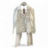 Nap classic white cotton voile pj set with stone linen piping.Long sleeve pant and long sleeve top.