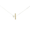 A polished brass bar (20mm x 3mm) and a pearl (8mm) on 420mm sterling silver chain.